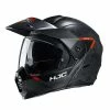 The C80 Dual Sport Modular helmet brings a new look to the HJC lineup. Designed to be used in either off-road or street, this new model allows the rider to have multiple configurations. The helmet is composed of our Advanced Polycarbonate Composite Shell, which provides a lightweight helmet, with superior fit and comfort from the advanced CAD technology. The C80 offers a wide vision face shield and easy to use internal sun shield. It also has a large top and lower vent to help keep the rider cool in hot riding conditions. Vents are easy to access and use with gloves on. The multiple helmet configuration allows the rider to use the helmet with or without the extended peaked visor. The modular chin bar uses a one-touch and easy to use lever that is glove-friendly. The C80 is also Smart HJC ready to accept the 10B or 20B Bluetooth systems (*sold separately).